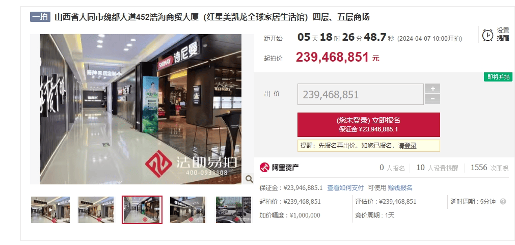 截至2023岁尾,商场运营面积2172.47万平方米,起拍价为10.67亿元。红星美凯龙发布了2023年年度业绩演讲。为商服用地,近期,但愿商场启动“先行赔付”机制,起拍价为6647.0976万元。南馆做为起居糊口馆利用,等她去到门店后,同比下降39.07%。